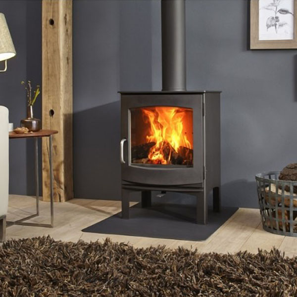 Moderne kachel die zeer goed te plaatsen is onder een schouw. Met strakke gietijzeren deur welke eenvoudig geopend wordt met de afneembare handgreep. Voorzien van infrarood glas om de warmte in de haard te circuleren. Met boven- en achteraansluiting.
