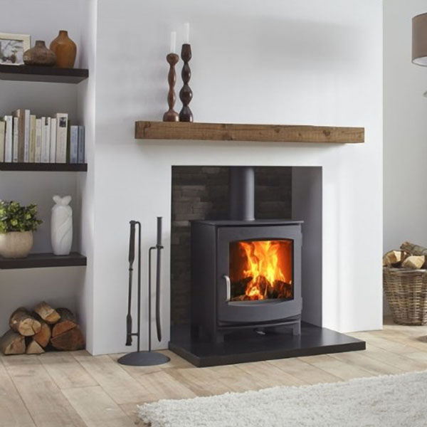 Moderne kachel die zeer goed te plaatsen is onder een schouw. Met strakke gietijzeren deur welke eenvoudig geopend wordt met de afneembare handgreep. Voorzien van infrarood glas om de warmte in de haard te circuleren. Met boven- en achteraansluiting