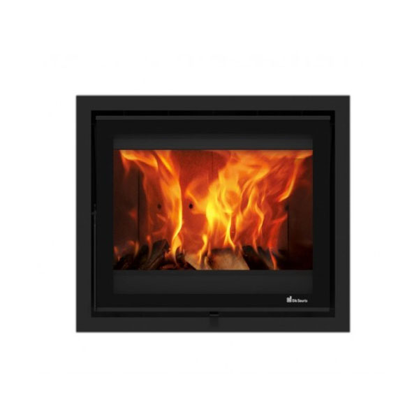 Inzethaard welke speciaal ontworpen is voor inbouw binnen een bestaande situatie. Met gescreend glas (zwart bedrukte rand). Voorzien van infrarood glas om de warmte in de haard te circuleren. Met boven aansluiting .
