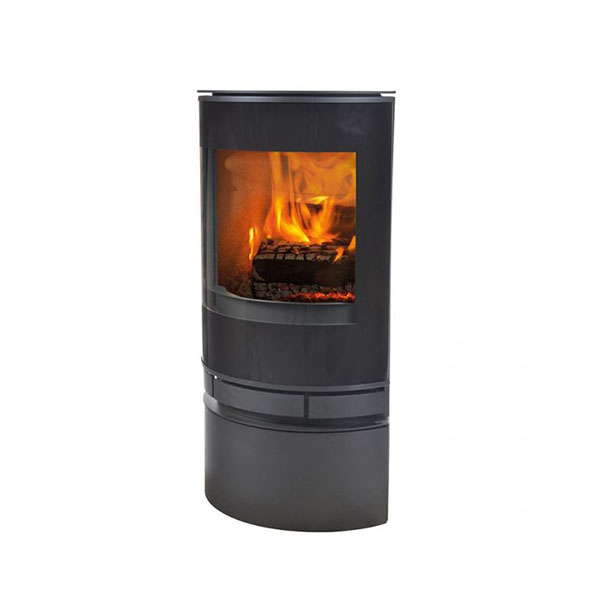 Onderscheidende kachel met ovaal ontwerp en opvallende details. Handgreep als prachtig roestvrijstalen lint met daarachter de DuplicAir luchtregeling. Breedste panoramaruit op de markt *180° zicht op het vuur).