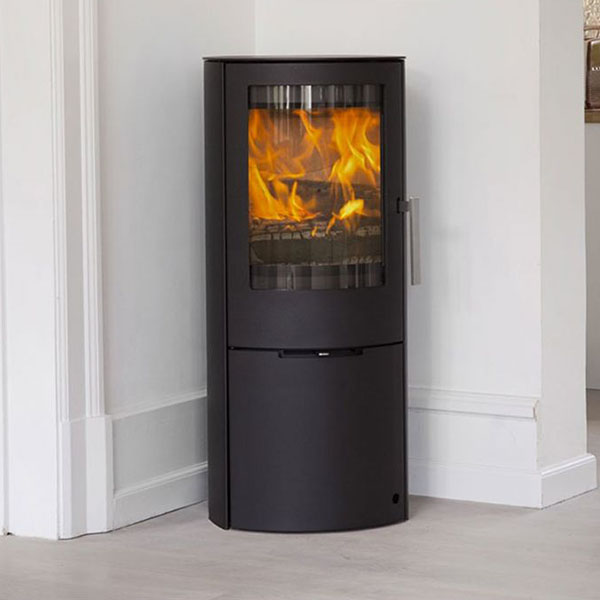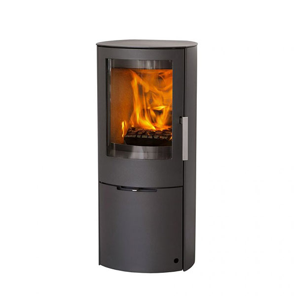 Kachel met een slanke en elegante uitstraling. Voorzien van grote gietijzeren deuren voor de brandkamer en aslade. Het gebogen glas geeft een imposant zicht op de verbrandingskamer. Eenvoudig te bedienen via het DuplicAir luchtsysteem. Met handgreep van massief roestvrij staal.