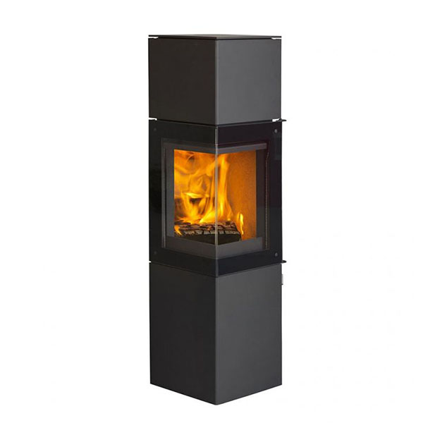 Kubusvormige houtkachel met gebogen glas en een geweldig zicht op het vuur vanuit verschillende hoeken. Zelfsluitende deur. Voorzien van DuplicAir luchtsysteem, dat zorgt voor een eenvoudige bediening en optimale verbranding.